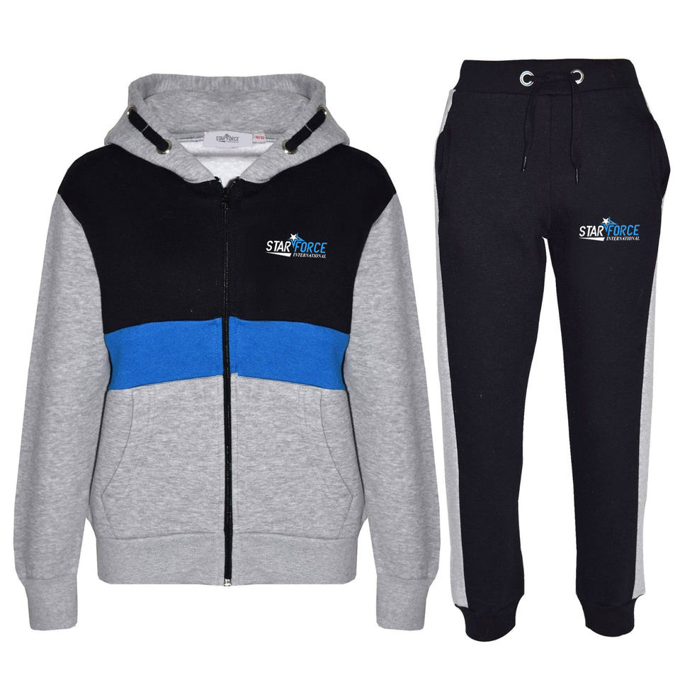 ชุดวอร์มสองชิ้นทรงแบ็กกี้น้ำหนักมากชุดวอร์มแนวสตรีทชุดวอร์มแบบรูดซิปและกางเกงวอร์มประดับพลอยเทียม