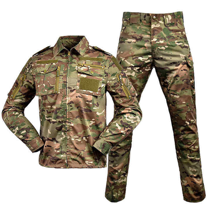 ชุดเครื่องแบบลายพรางยุทธวิธีสองชิ้นสำหรับผู้ชายเสื้อผ้ากลางแจ้งแบบพอดีตัวผ้าทนทานส่งตรงจากโรงงาน