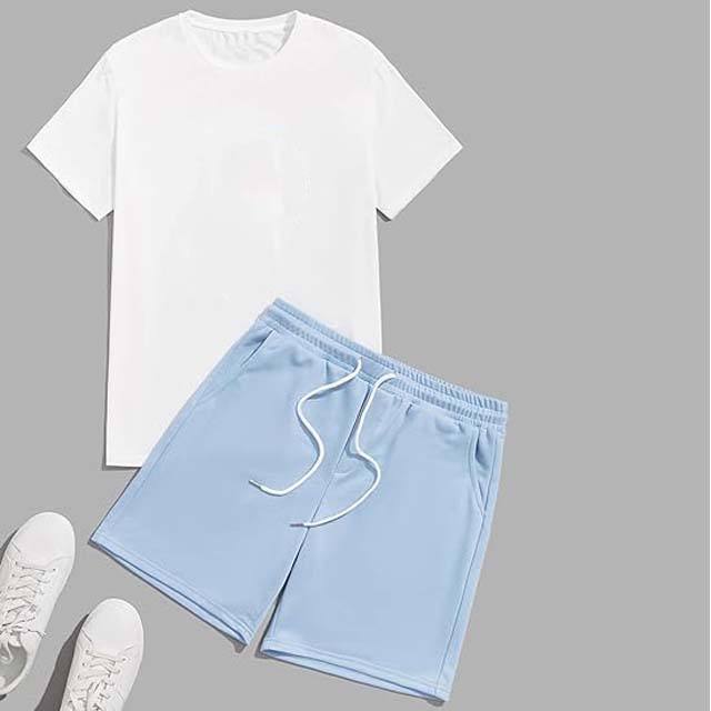 สองชิ้นคู่ชุดเสื้อผ้าผู้ชายเสื้อยืดขนาดใหญ่และกางเกงขาสั้นขนาดบวกผ้าฝ้ายระบายอากาศถนนสูงลําลองผู้ชายชุดฤดูร้อน