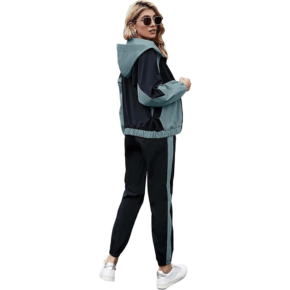 ชุดวอร์มพิมพ์ลายสำหรับผู้หญิงแบบสองชิ้น น้ำหนักเบา พร้อมโลโก้สั่งทำพิเศษ ดีไซน์ไหล่ตก กันลมและระบายอากาศได้ดี เหมาะสำหรับใส่ในฤดูหนาว