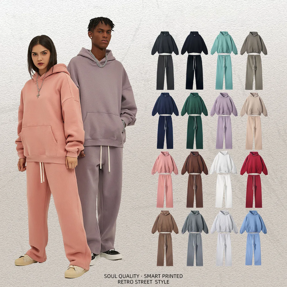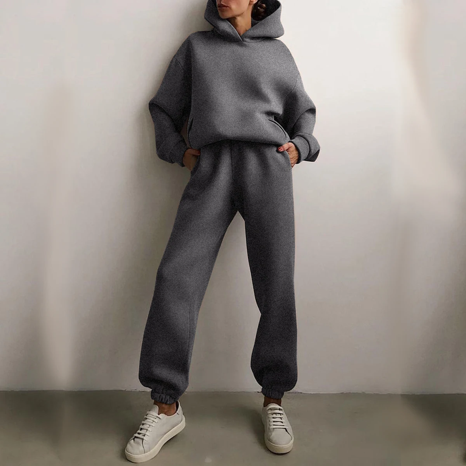เสื้อแขนยาวแบบสวมหัวมีฮู้ดสำหรับผู้หญิง, ชุดวอร์มสองชิ้นโอเวอร์ไซส์แฟชั่นฤดูหนาว