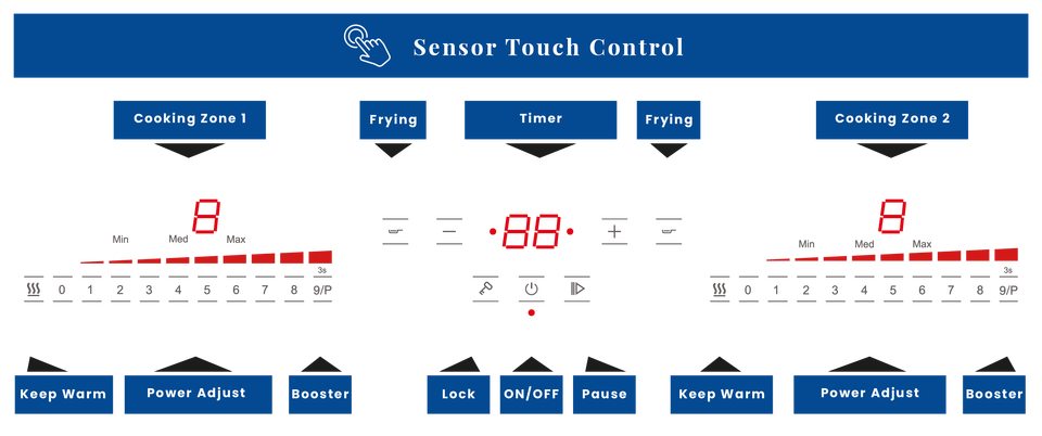 เตาแม่เหล็กไฟฟ้าสองหัวแบบสองแผ่นพร้อมระบบล็อคป้องกันเด็ก