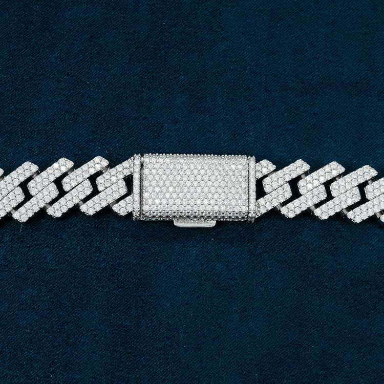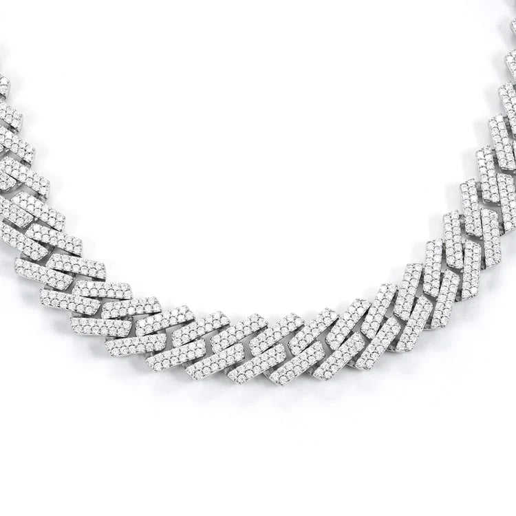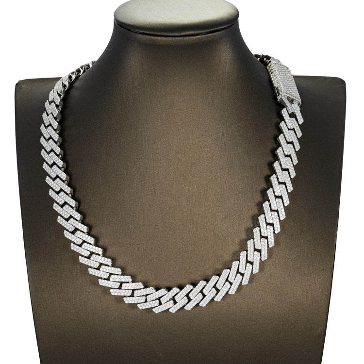 สร้อยคอคิวบาลิงค์ประดับเพชรโมอิสซาไนต์สองแถว เงินแท้ 925 ชุบทองคำขาว เครื่องประดับฮิปฮอป