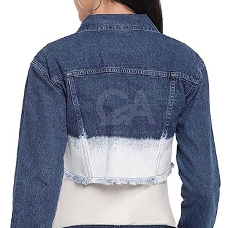 Two Shaded Cropped Jeans Jacket Custom Design Printed Women Crop Jeans Jackets Pakistan Manufacturer Crop Jeans Jackets