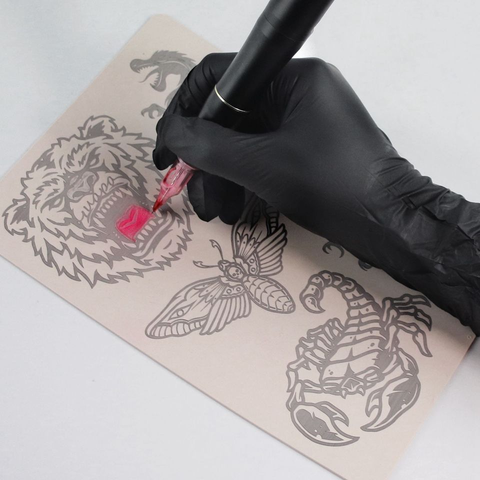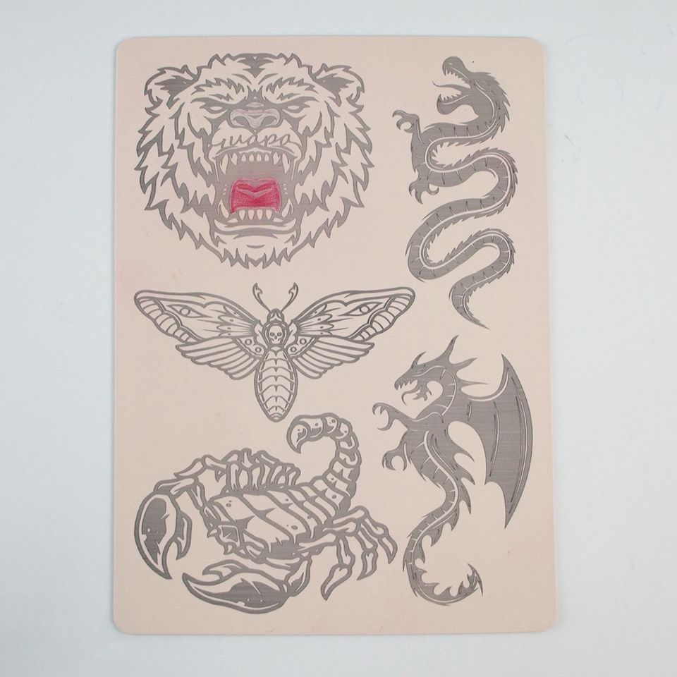 สองด้านก่อนวาดซิลิโคนการปฏิบัติรอยสักผิวปลอมผิวรอยสักเสือผีเสื้อมังกรค้างคาวแมงป่องรูปแบบ
