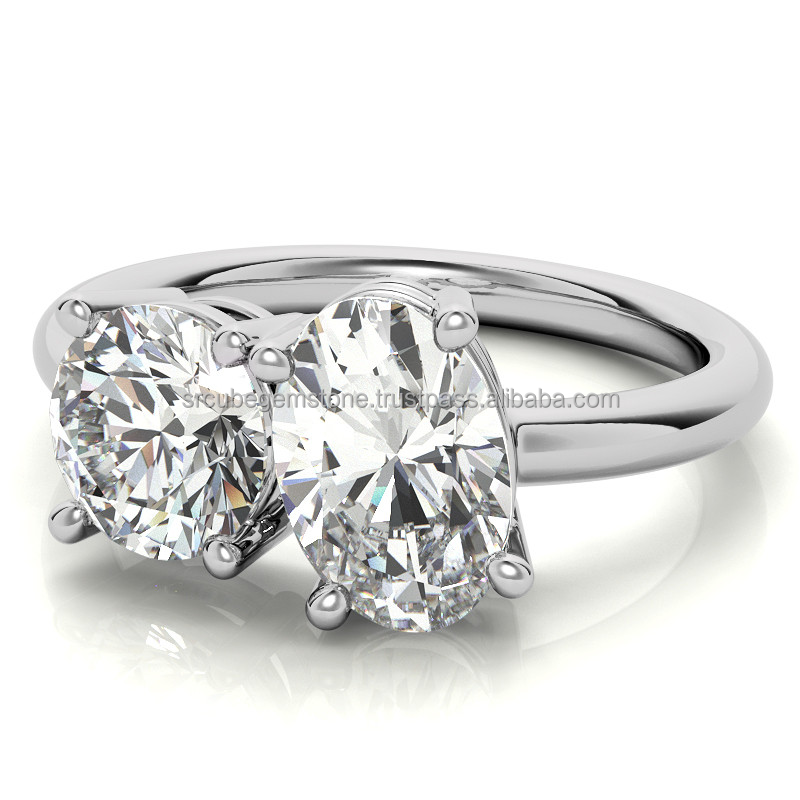 สองหินสีขาว HPHT CVD แหวนหมั้นเพชร925เงินสเตอร์ลิงชุบทองชุดช่องได้รับการรับรอง IGI สำหรับงานแต่งงานที่ทันสมัย