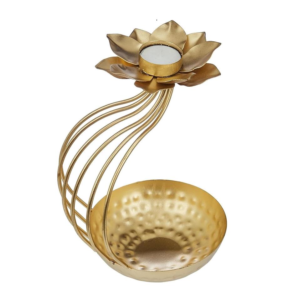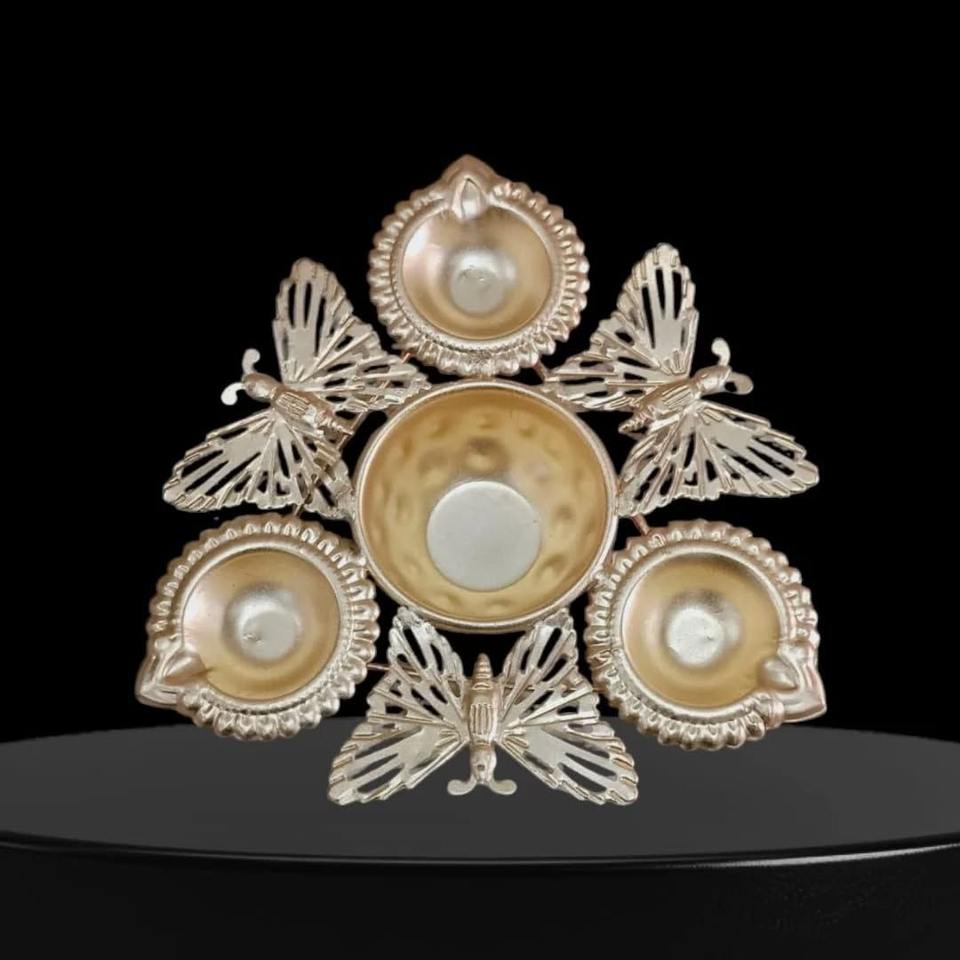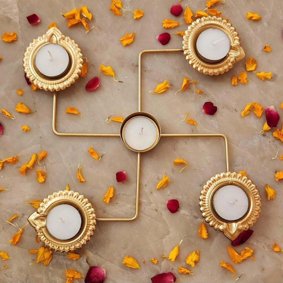 ขาตั้งดิยาทองเหลืองสีทองสองชั้นพร้อมกระดิ่งสำหรับ Pooja Mandir Temple Aarti Diwali Festival ผู้ถือหลายคนได้รับการตกแต่งทางจิตวิญญาณ