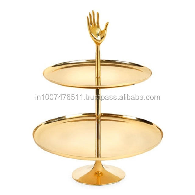 สองชั้นตอกทองแดงที่ให้บริการยืนเค้กที่มีก้านทองเหลืองทองแดง