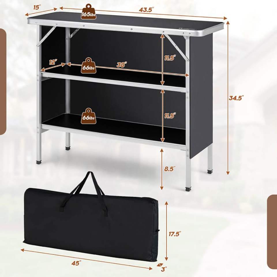 โต๊ะพับสำหรับตั้งแคมป์แบบสองชั้นพร้อมชั้นวางของแบบเปิด สำหรับบาร์บีคิวกลางแจ้ง ผลิตภัณฑ์ระดับพรีเมียม ประเภทโต๊ะ