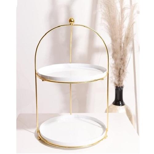 ขาตั้งเค้กโลหะตกแต่งโต๊ะเคลือบสีขาวสองชั้นขาตั้งเค้กชุบอลูมิเนียมพร้อมฐานยืน