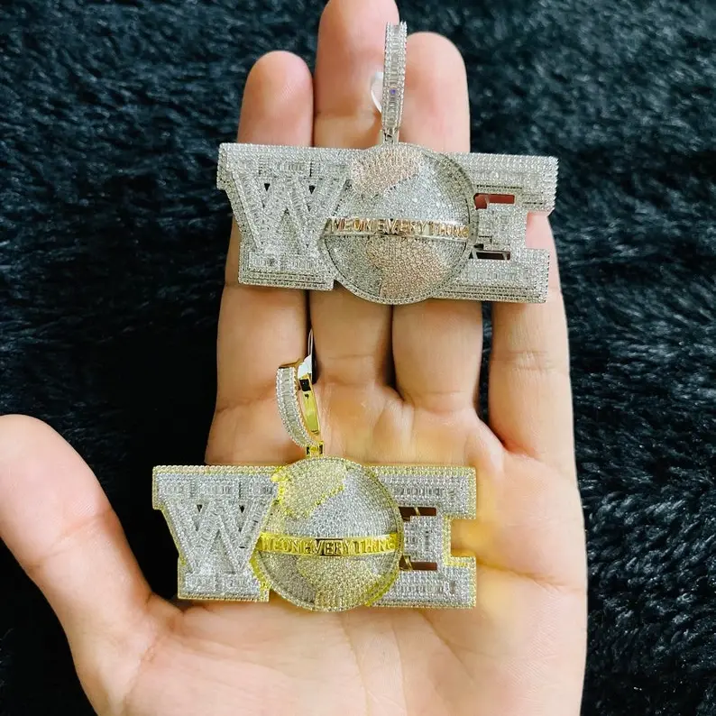 สร้อยคอจี้รูปโลกแบบสองสี ชุบทอง 14k ประดับเพชรไมโครเพฟ สไตล์ร็อปเปอร์ พังก์ ฮิปฮอป สำหรับผู้ชาย ของขวัญเครื่องประดับเงิน