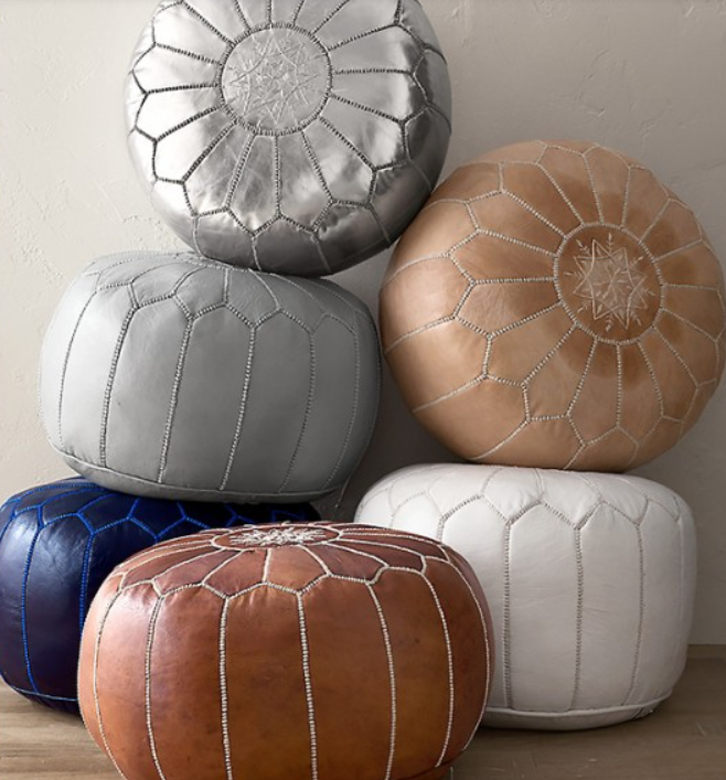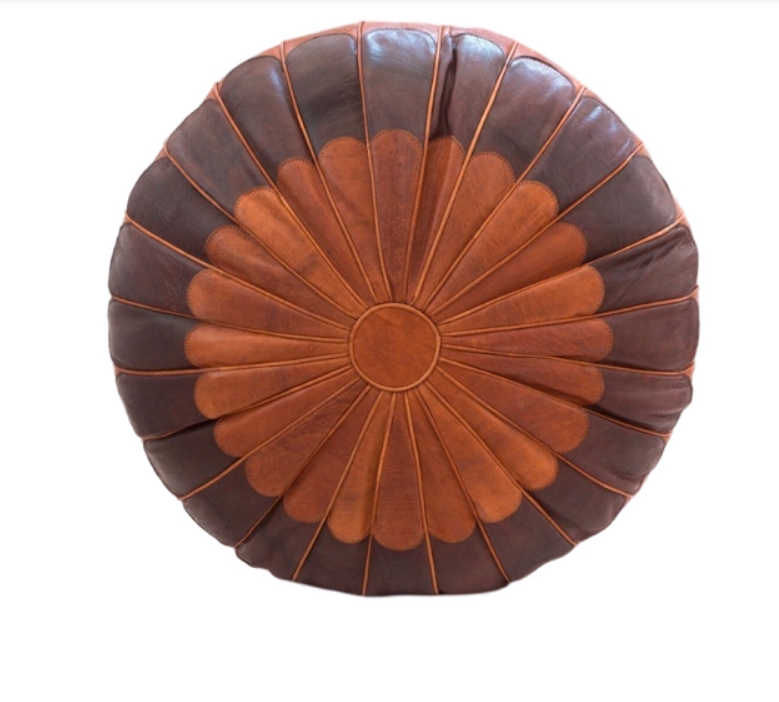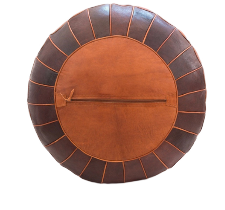 ม้านั่งทรงกลมหนังสีน้ำตาลสองสีสไตล์โมร็อกโกสำหรับตกแต่งบ้านสำหรับห้องนอนหรือใช้งานกลางแจ้ง
