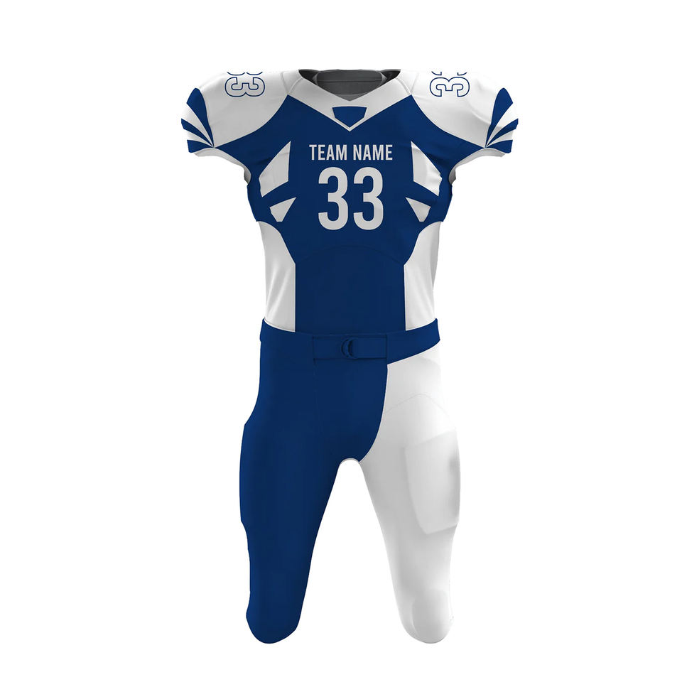 ชุดยูนิฟอร์มฟุตบอลอเมริกันผ้าโพลีเอสเตอร์ชุดยูนิฟอร์มแบบระเหิดสำหรับเล่นกีฬาดีไซน์ตามสั่งสีทูโทน