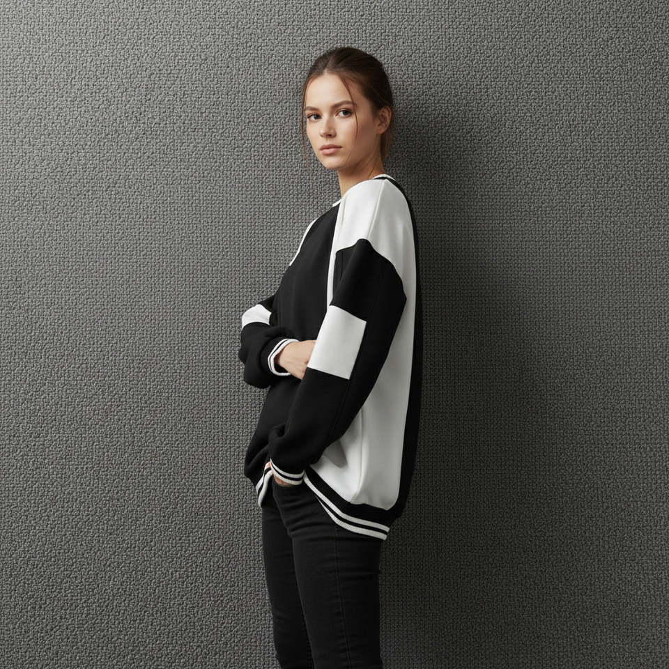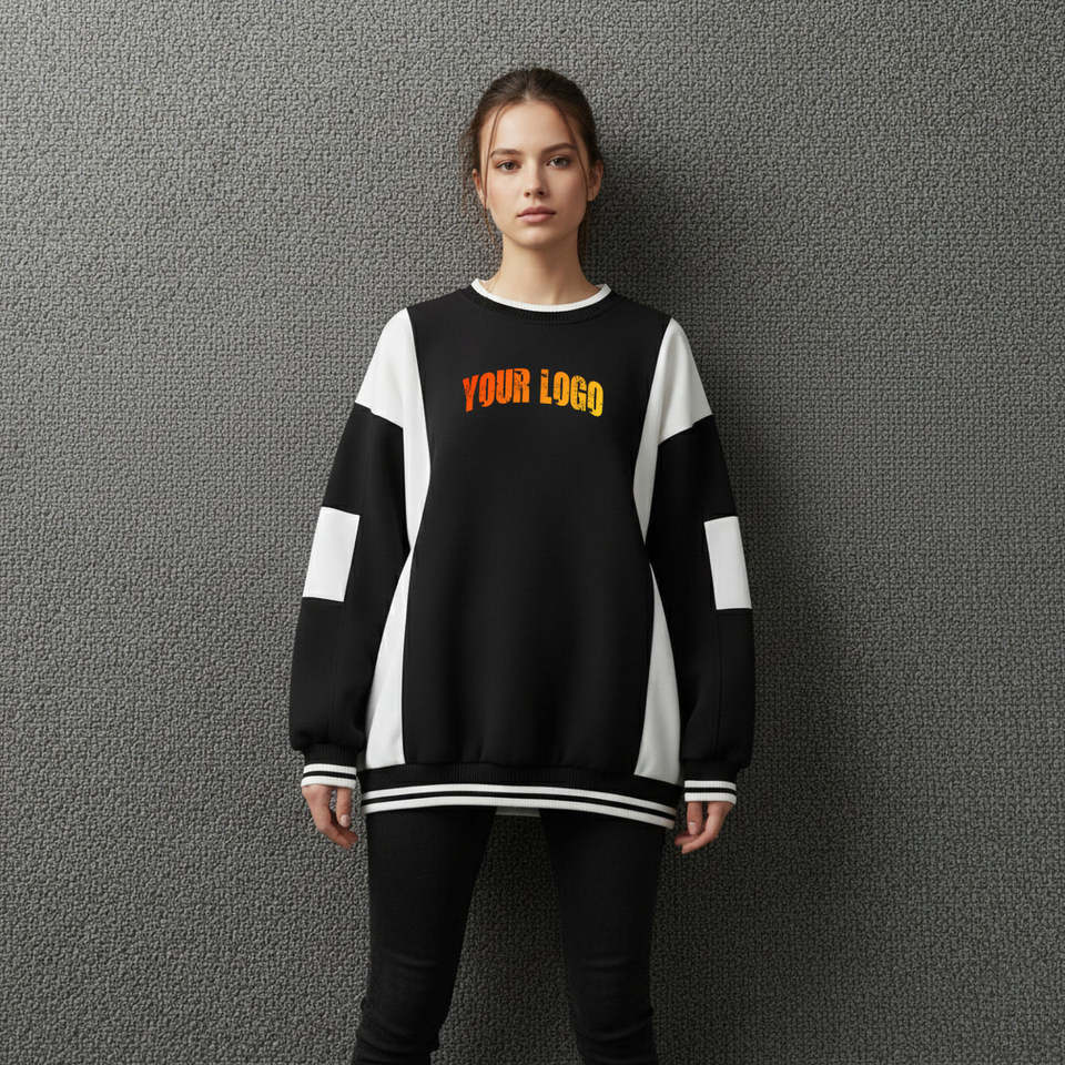 เสื้อสเวตเชิ้ตโอเวอร์ไซส์ผู้หญิงสองสี สำหรับฤดูหนาว ผ้าฝ้ายฟลีซ 100% คอกลม แบบสวมหัว เป็นมิตรต่อสิ่งแวดล้อม เสื้อฮู้ดผู้หญิง
