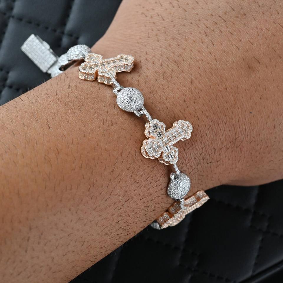 สร้อยข้อมือเงินแท้ 925 ชุบทองสองสี ประดับเพชรโมอิสซาไนต์ทรงเหลี่ยมเจียระไนวิบวับ สี D คุณภาพ VVS ดีไซน์ทันสมัย