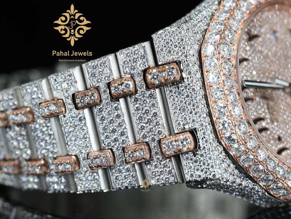 นาฬิกาหรูแบบสองสีสั่งทำพิเศษ คุณภาพสูง ประดับด้วยเพชรโมอิสซาไนต์ VVS ระยิบระยับ สำหรับทุกเพศ ของขวัญสุดพิเศษ อุปกรณ์เสริมที่สมบูรณ์แบบ