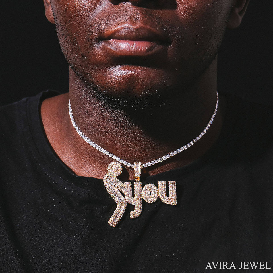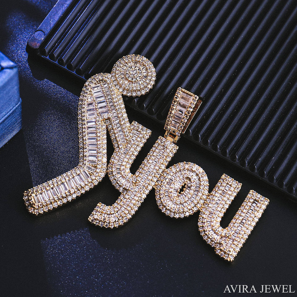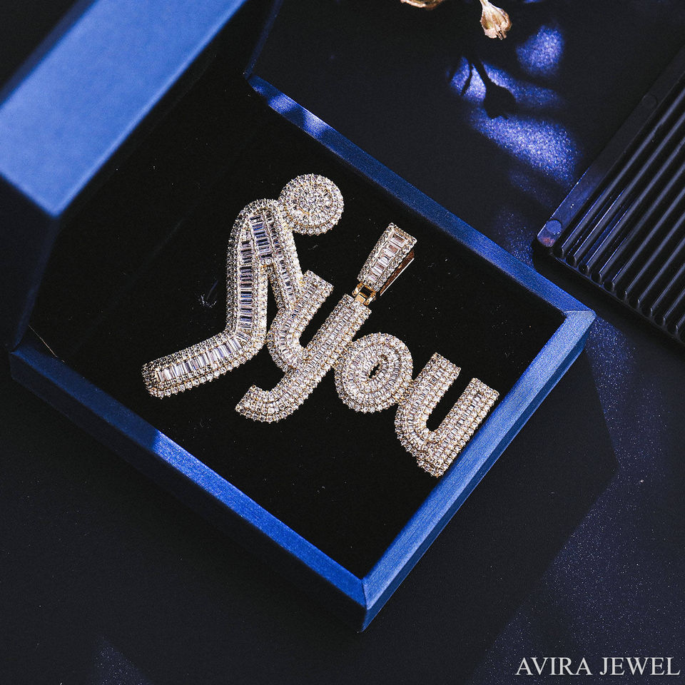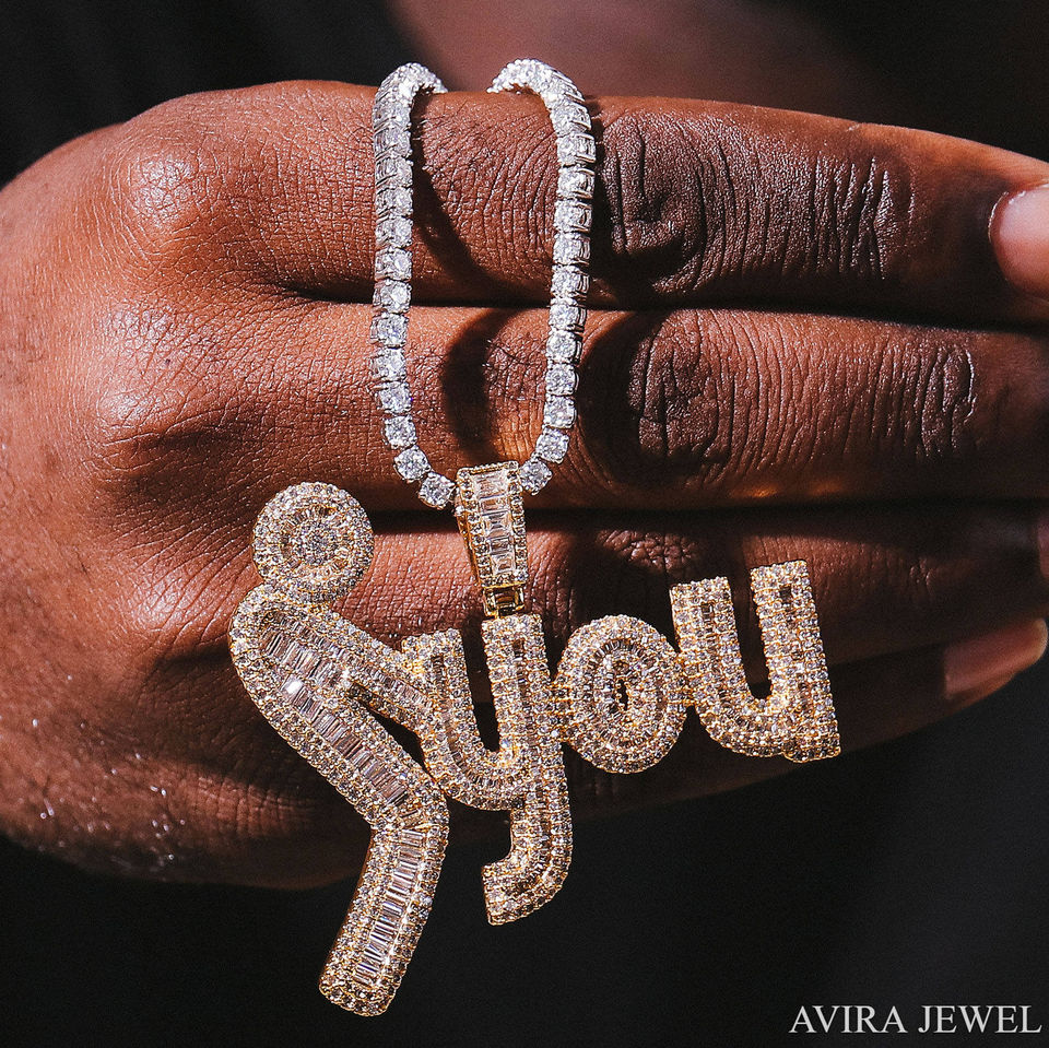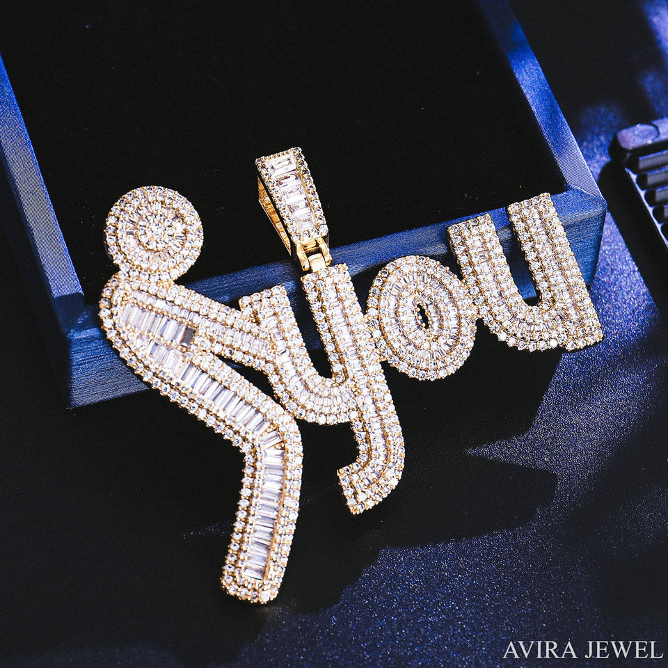 จี้เพชรโมอิสซาไนต์ทรงฮิปฮอป ดีไซน์ทันสมัย สำหรับคนรักแฟชั่น ชุบทองสองสี ปราศจากนิกเกิลและสารตะกั่ว งานประณีตจาก Avira Jewels
