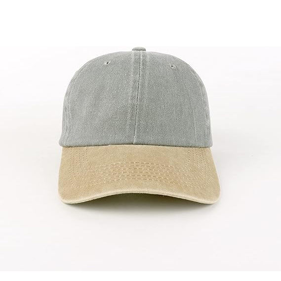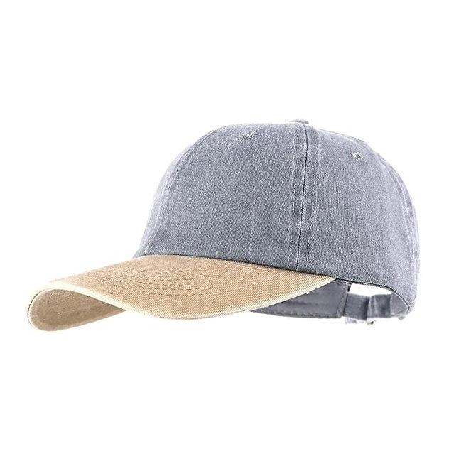 หมวกเบสบอล 5 ชิ้นส่วน สีเทา-น้ำตาล ผ้าฝ้ายฟอกสี โทนสีตัดกัน ทรงไม่แข็ง ปรับขนาดได้ ระบายอากาศ กันน้ำ สไตล์ลำลอง