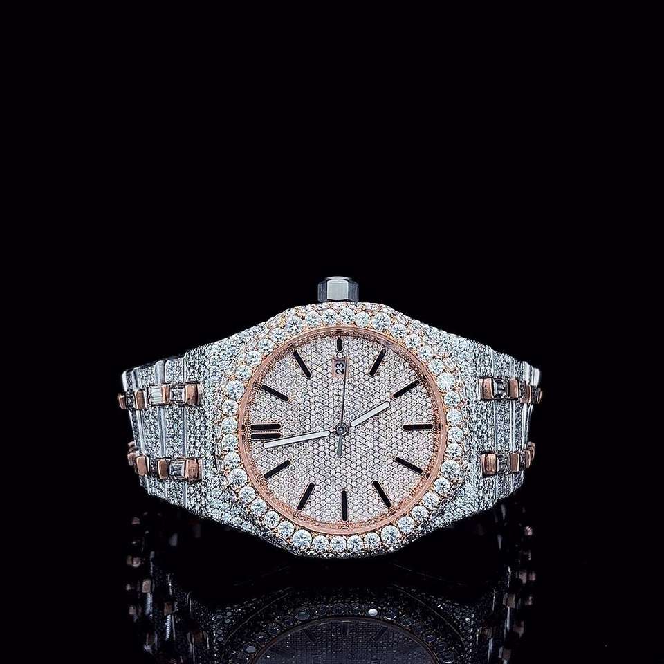 นาฬิกาข้อมือผู้ชายสุดหรูแบบสองสี ประดับเพชรโมอิสซาไนต์ ฝังแบบ Pave พร้อมกลไกควอตซ์ ETA ดีไซน์สวยสง่างาม