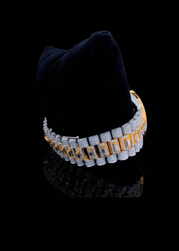 Two Tone Iced Out Moissanite Watch Yellow and White Gold Plated Watch Hip Hop Watch for Men's Fashion Jewelry
