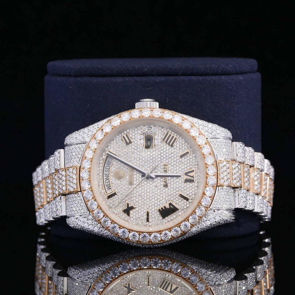 นาฬิกาข้อมือแบบสองสีประดับเพชรแล็บโกรว์ พร้อมกลไกอัตโนมัติแบบสวิส ตัวเลขโรมัน ฟังก์ชั่นวันที่ และตัวเรือนสแตนเลส