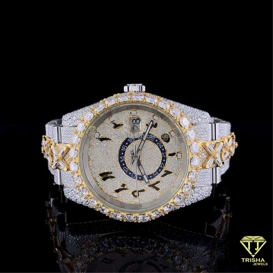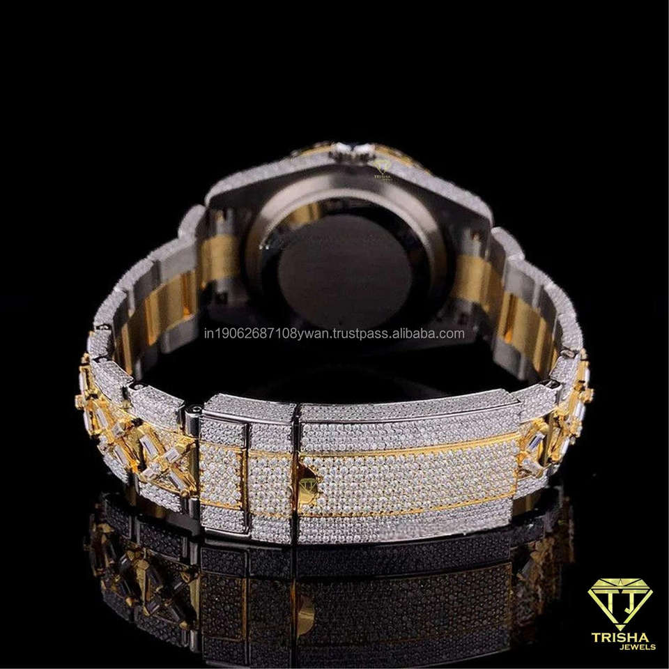 นาฬิกาผู้ชายหรูหราสองสีประดับเพชร VVS แท้ทั้งเรือน ตัวเรือนเงินแท้ 925