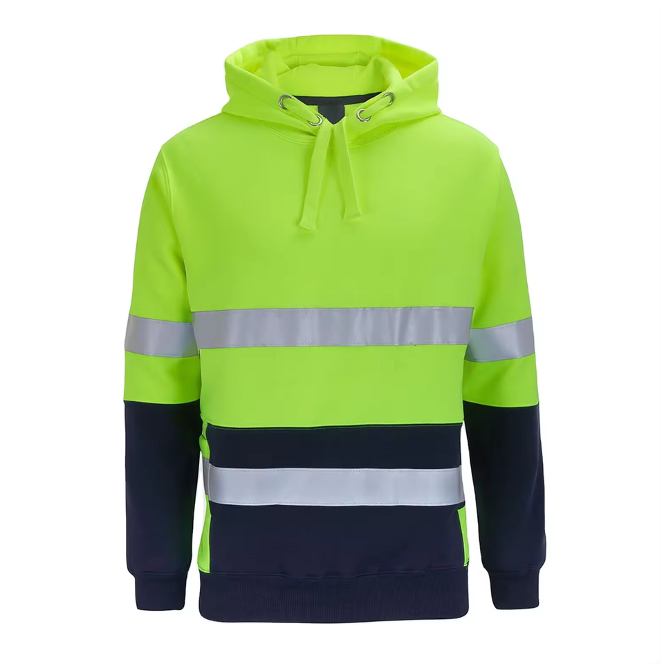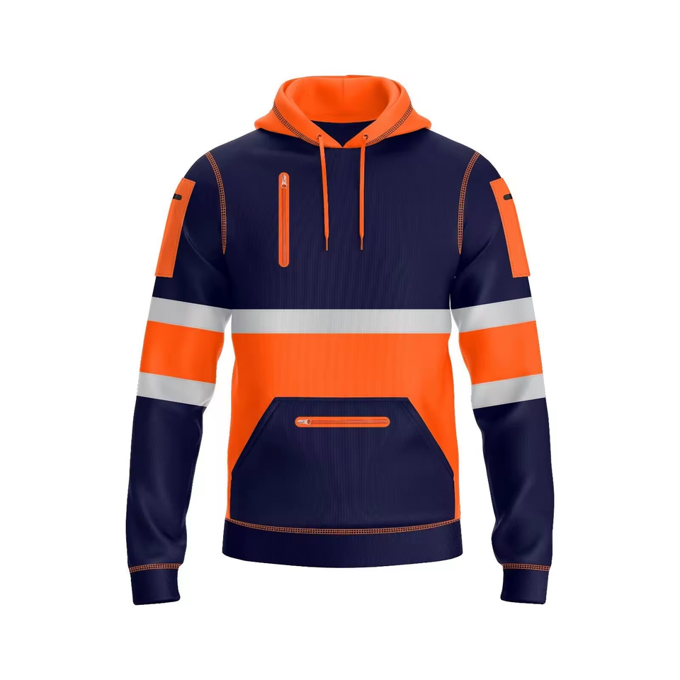 เสื้อสวมหัวมีฮู้ดผ้าขนแกะไมโครไฟเบอร์ปลอดภัยแบบสองสีสีส้มสีกรมท่าระบายอากาศได้ดี