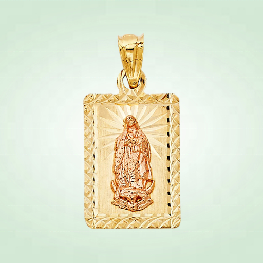 จี้รูปพระแม่มารีย์สองสีเครื่องประดับคริสเตียนที่ทันสมัยสำหรับผู้ชายผู้หญิงเด็กโลโก้ที่กำหนดเองบรรจุภัณฑ์โลหะอัลลอย