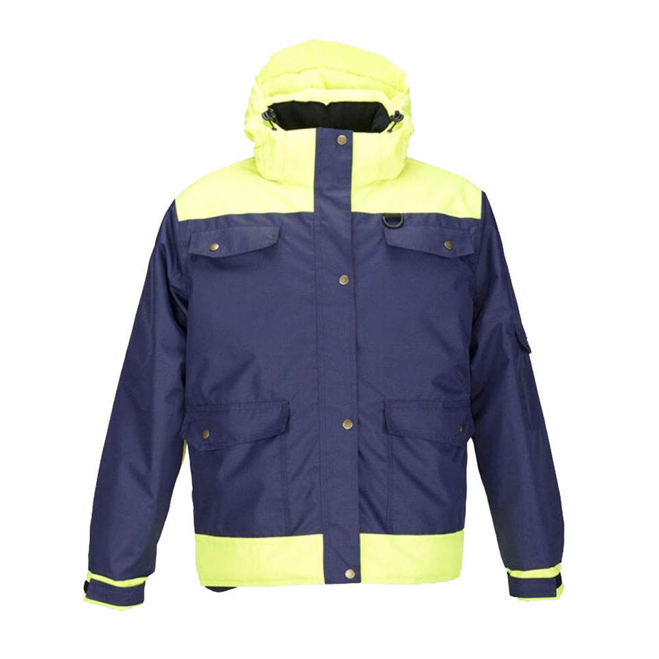 แจ็กเก็ตนิรภัยสะท้อนแสงสองสีพร้อมซิปกันน้ำและซับในสำหรับแจ็กเก็ตเพื่อความปลอดภัยในสภาวะที่ไม่เอื้ออำนวย