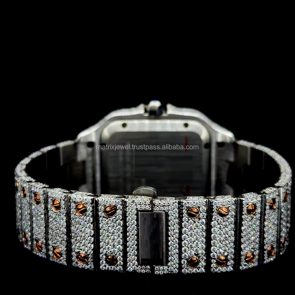 นาฬิกาฝังเพชรโมอิสซาไนต์ VVS 1 แบบเต็มหน้าปัด สีโรสโกลด์และไวท์โกลด์ พร้อมใบรับรองจาก Diamond Tester