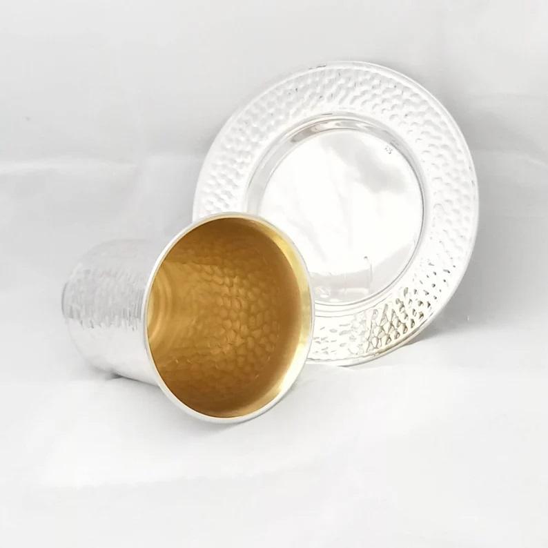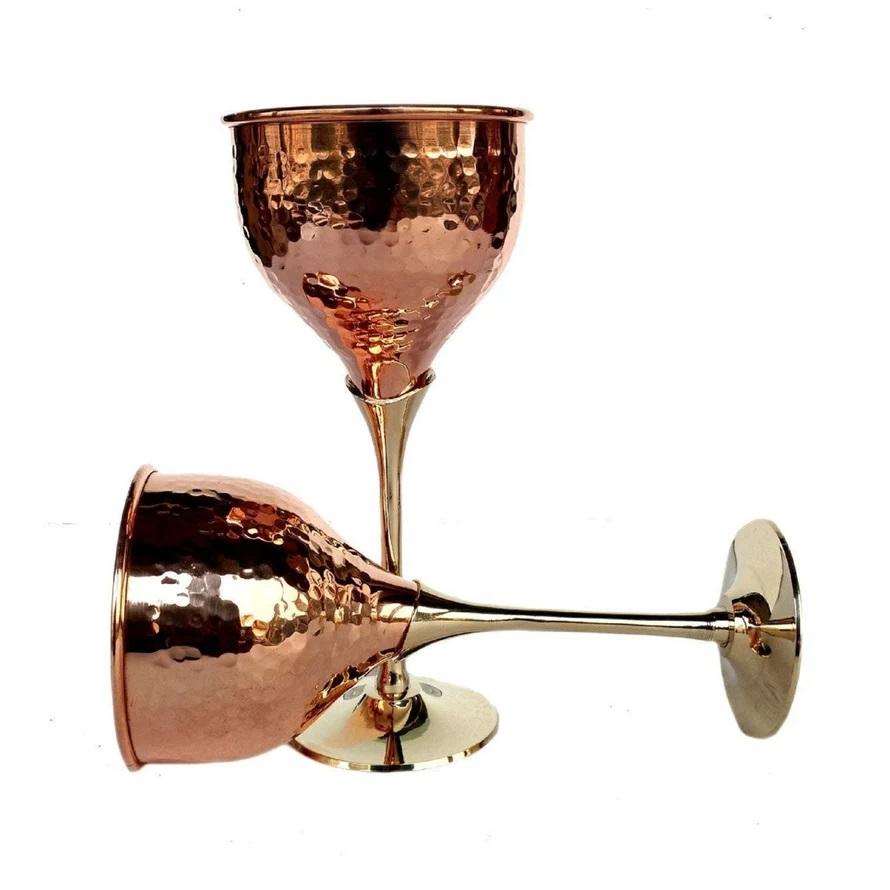 แก้วไวน์อลูมิเนียมสองสีเงินและสีทองที่มีแผ่นกลมผลิตในอินเดียหรูหราสำหรับถ้วยแชมเปญ