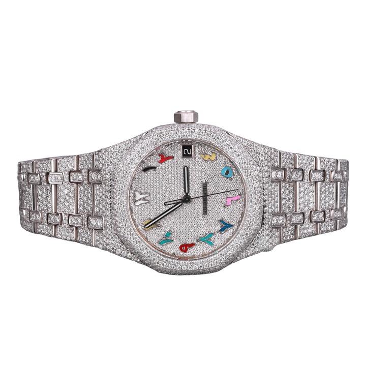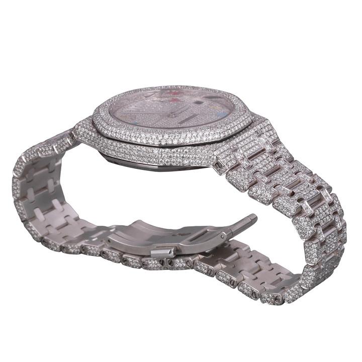นาฬิกาเพชรโมอิสซาไนต์ VVS สองสี เงินและโรสโกลด์ สำหรับผู้ชาย สายสแตนเลสสตีล หรูหรา ประดับเพชรเต็มเรือน แฟชั่นเครื่องประดับฮิปฮอป
