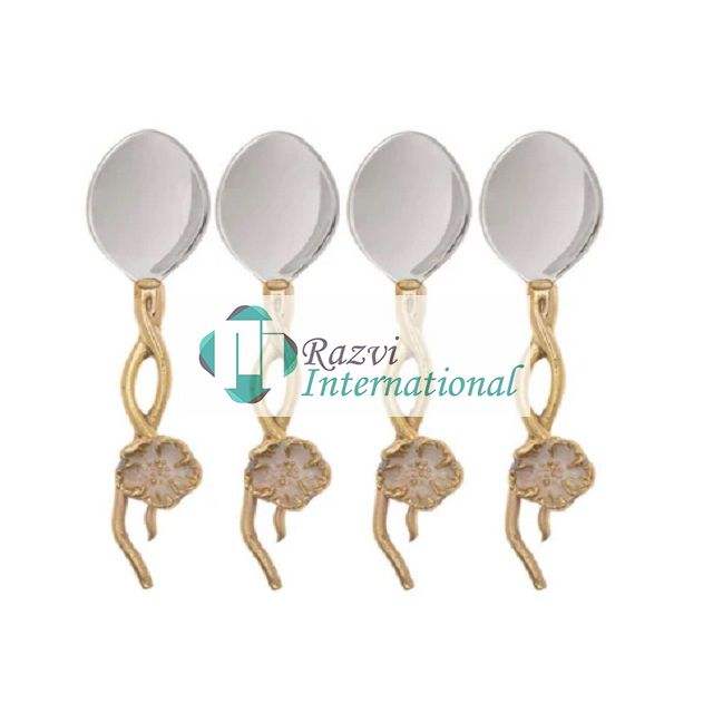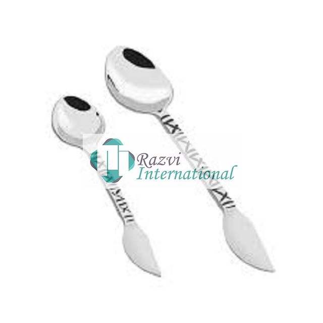 ชุดช้อนรับประทานของหวานแบบสองโทนทำจากสเตนเลสมีด้ามจับดีไซน์แบบโมเสก