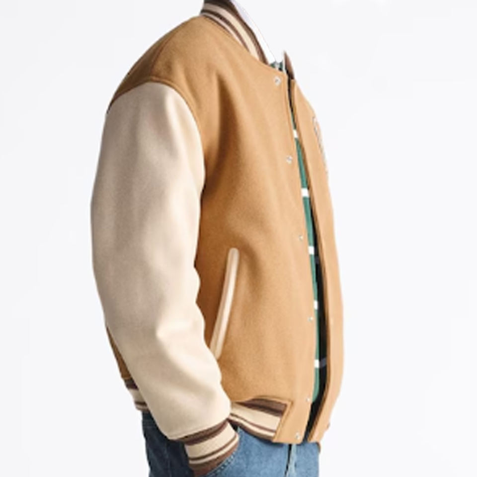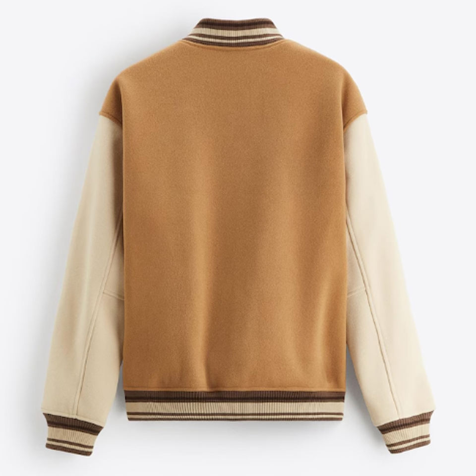 แจ็กเก็ตเบสบอลบอมเบอร์แจ็คเก็ตวิทยาลัยทูโทนสำหรับผู้ชายเสื้อโค้ทลำลองสไตล์วินเทจใส่ได้ทั้งชายและหญิงพร้อมแผ่นปะกำมะหยี่