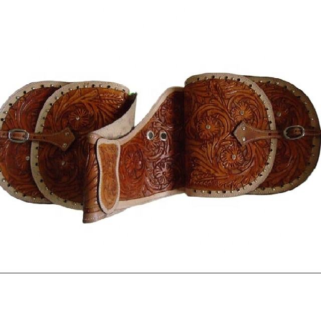 Two Toned Leather Saddle Bag Genuine Leather High Premium Quality Hand Tooled Foldable Saddle Bags Multifunctional & Spacious