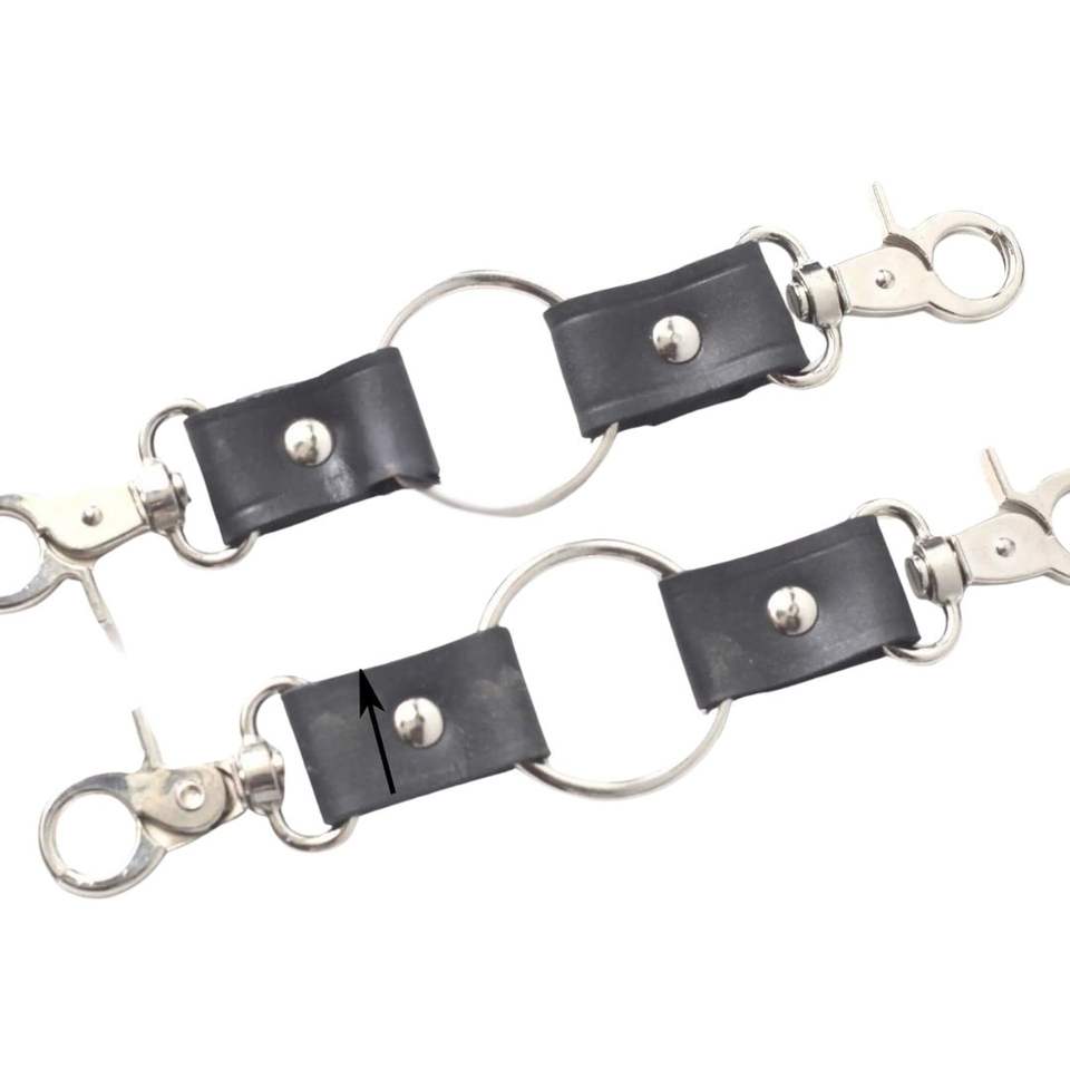 กุญแจมือทาสหนังสองทางพร้อมคลิปหมุนและฮาร์ดแวร์สำหรับงานหนัก