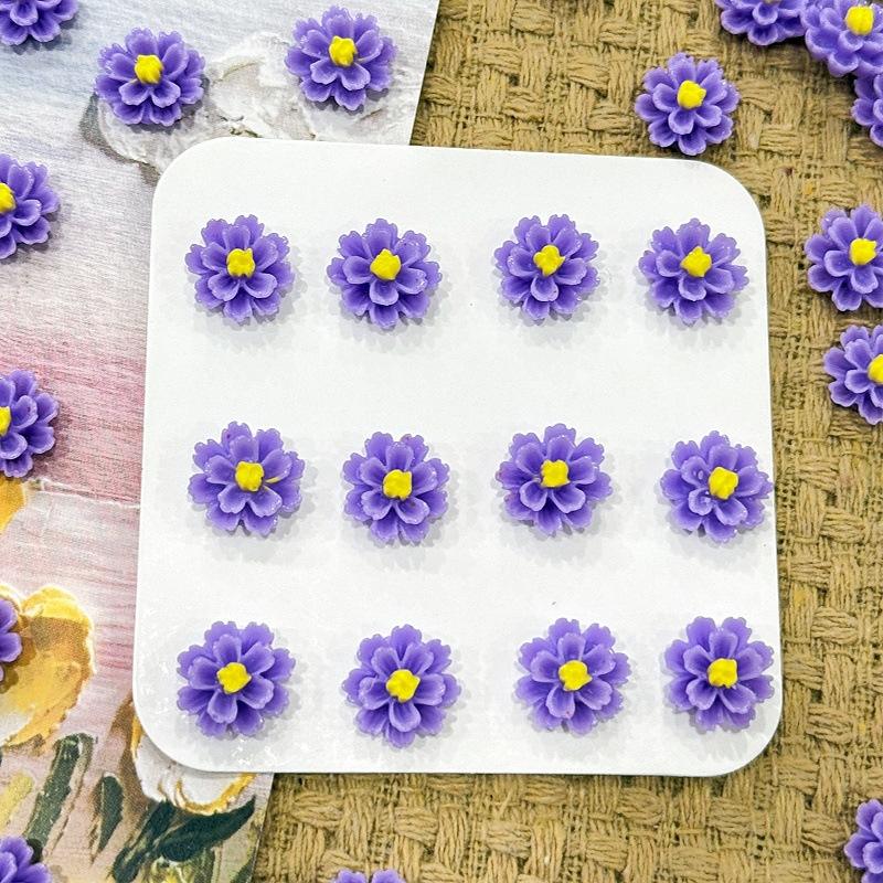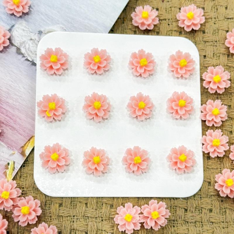 ต่างหูเรซิ่นสามมิติลายดอกชบาและดอกโบตั๋นสองสีแบบหลายชั้น งานแฮนด์เมด DIY อุปกรณ์ตกแต่งเล็บ