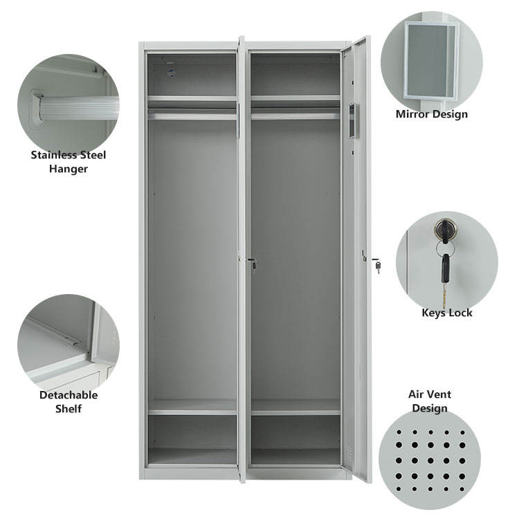 ชื่อผลิตภัณฑ์:Almirah ตู้เสื้อผ้าเหล็กตู้เสื้อผ้าตู้เก็บของ2ประตู