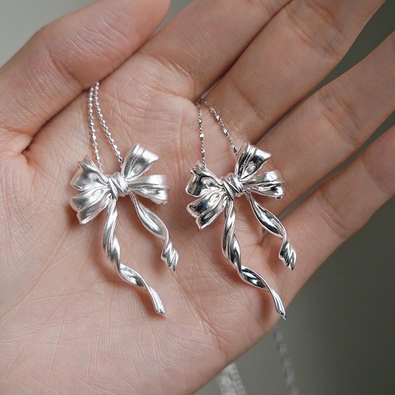 สร้อยคอไข่มุกประดับโบว์ริบบิ้นสองชั้นสำหรับผู้หญิง เงินแท้ S925 ดีไซน์หรูหรา สไตล์ศาสนา สีทอง ออกแบบมาสำหรับสาวหวาน