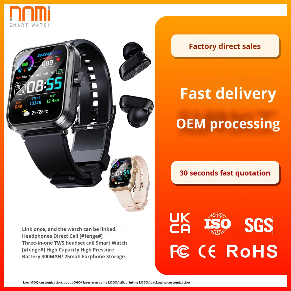 สมาร์ทวอทช์และหูฟังแบบสองในหนึ่งเดียว S6 หน้าจอ TFT กันน้ำระดับ IP67 ควบคุมระยะไกล ตรวจวัดอัตราการเต้นของหัวใจ ใช้งานร่วมกับ Android ได้