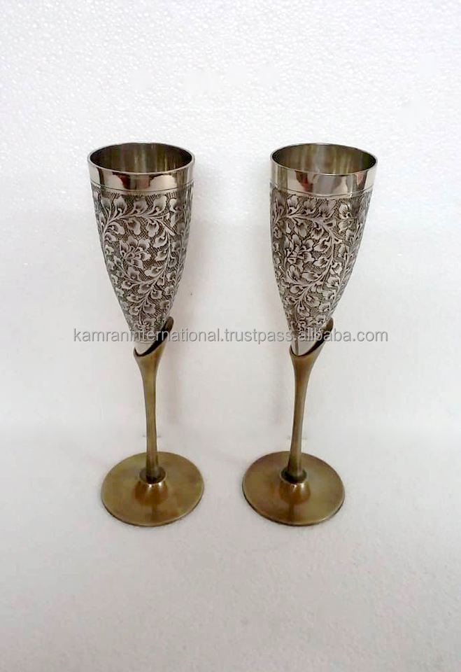 แก้วแชมเปญสไตล์หรูหราพร้อมแก้วค็อกเทลไวน์ชุบด้วยทองเหลืองสองโทนสีเงินหรูหราหรูหรา