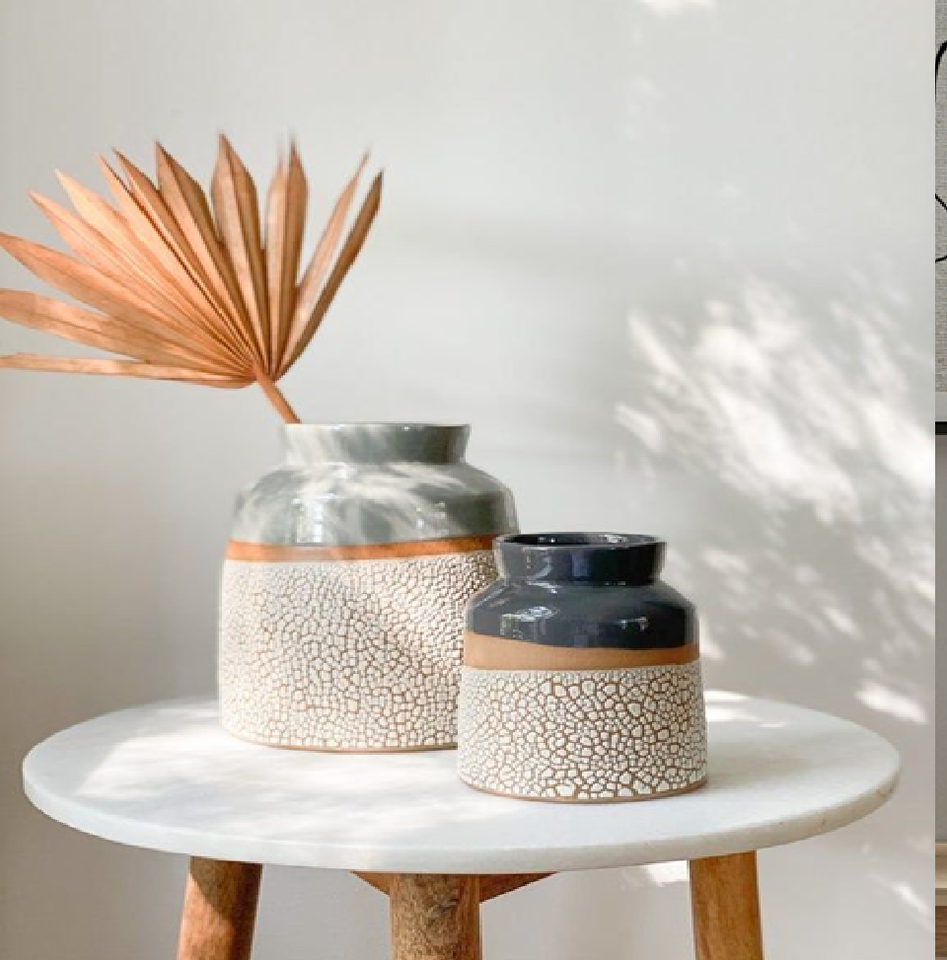แจกันสโตนแวร์ทูโทนสีดำ/ขาวเรียบง่ายเรียบง่ายเหมาะสำหรับสาขาที่มีจำหน่ายในราคาขายส่ง