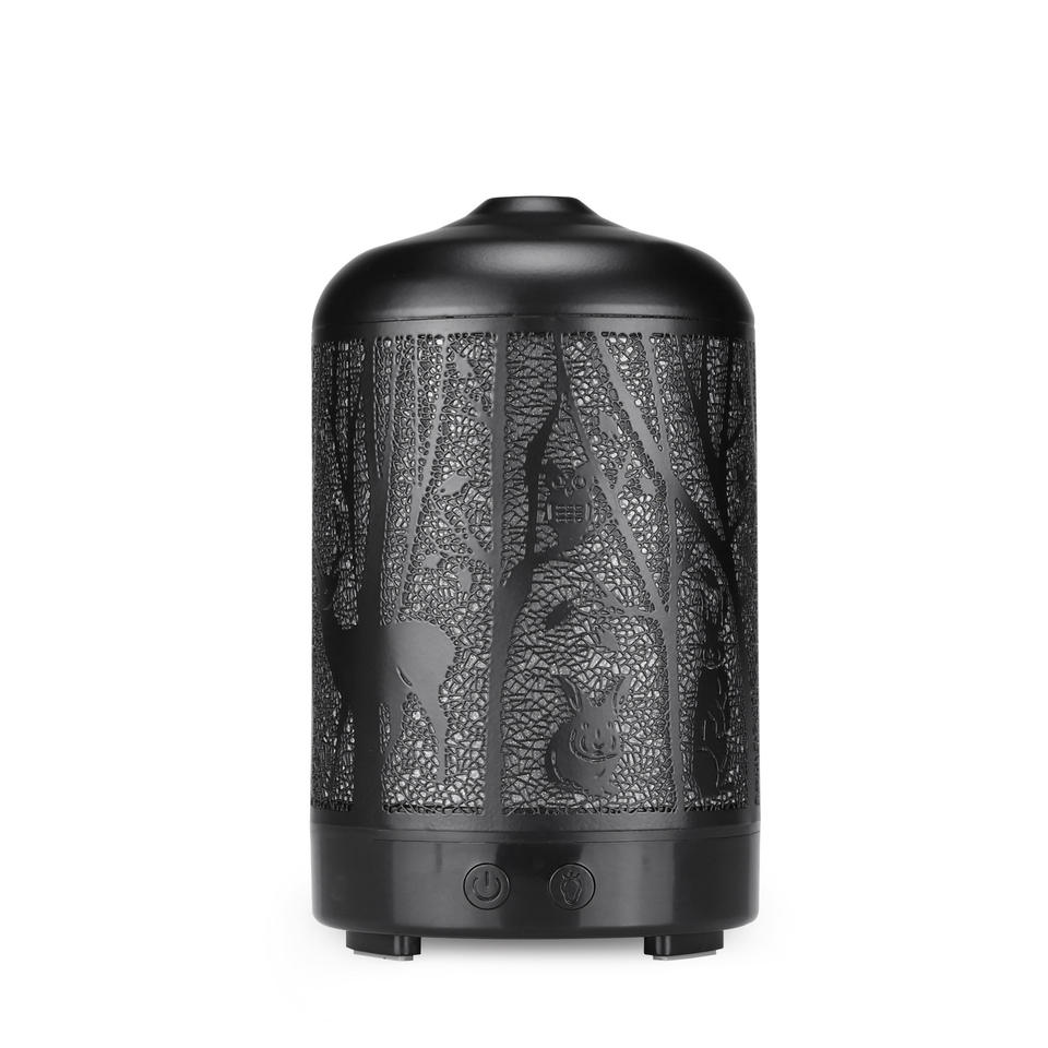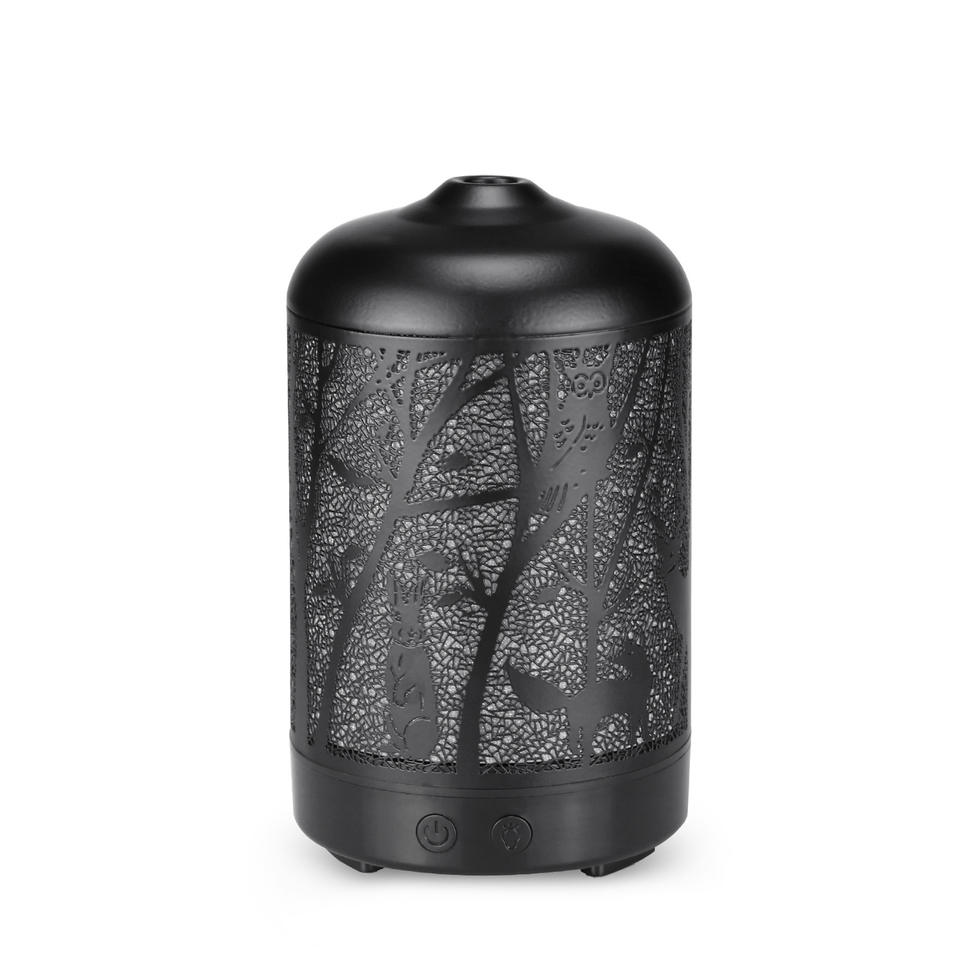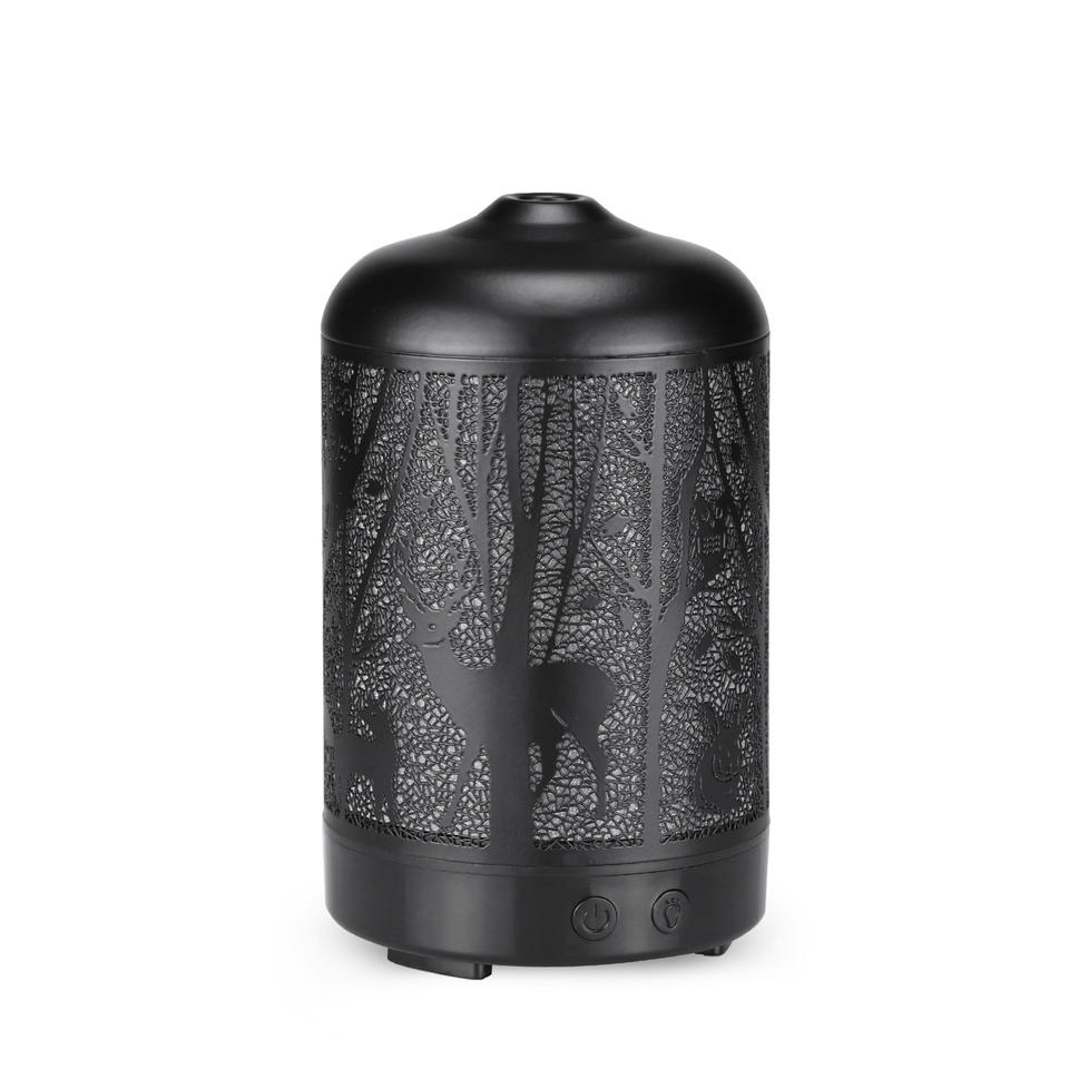 Ty-166 เครื่องกระจายกลิ่นหอมรูปกวางน้อย 100 มล. เครื่องเพิ่มความชื้นแบบอัลตราโซนิก ไฟ LED ใช้ในบ้านและเชิงพาณิชย์ ดีไซน์โลหะสีดำแบบโปร่ง
