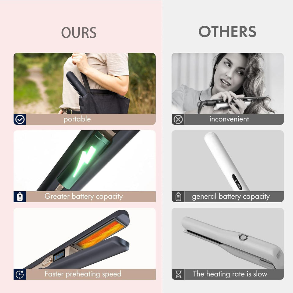 Type-C ที่หนีบผมเซรามิกแบบพกพา, ที่หนีบผมแบบไร้สายมีไฟแสดงอุณหภูมิแบตเตอรี่ LCD แบบชาร์จไฟได้