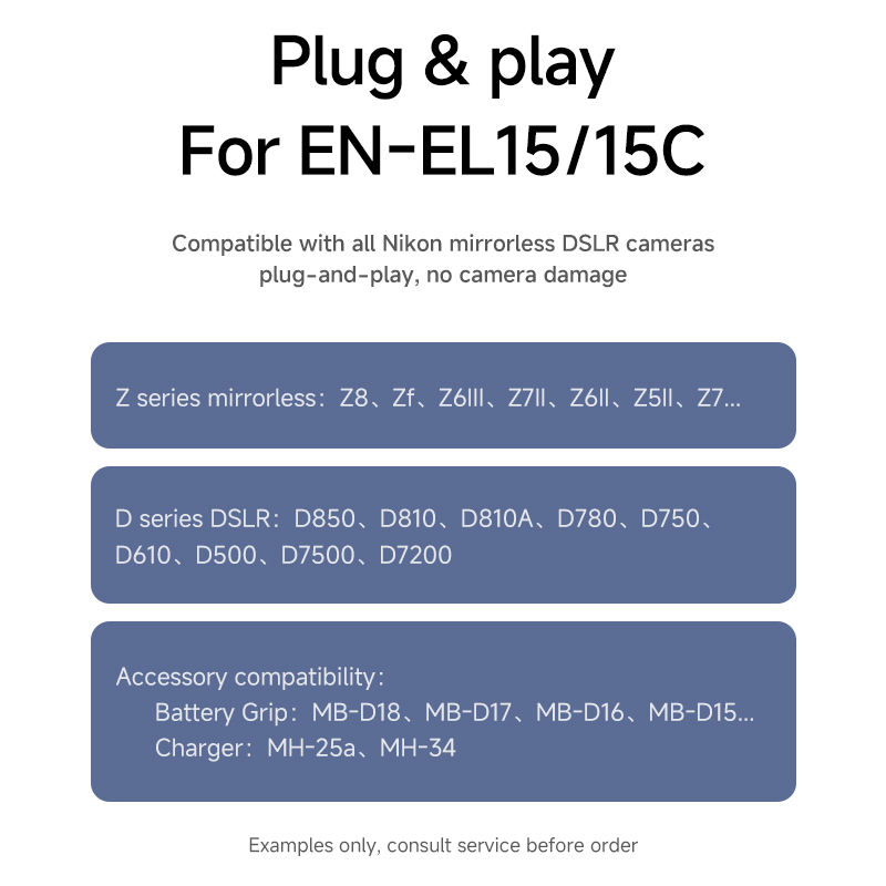 แบตเตอรี่แพ็คแบบชาร์จเร็ว Type-C EN-EL15/15C ใช้ได้กับ Z8/Z7I/Z7/Z6I11 Z6ll/Z6/Z5Il และรุ่นอื่นๆ - มีสินค้าในสต็อก