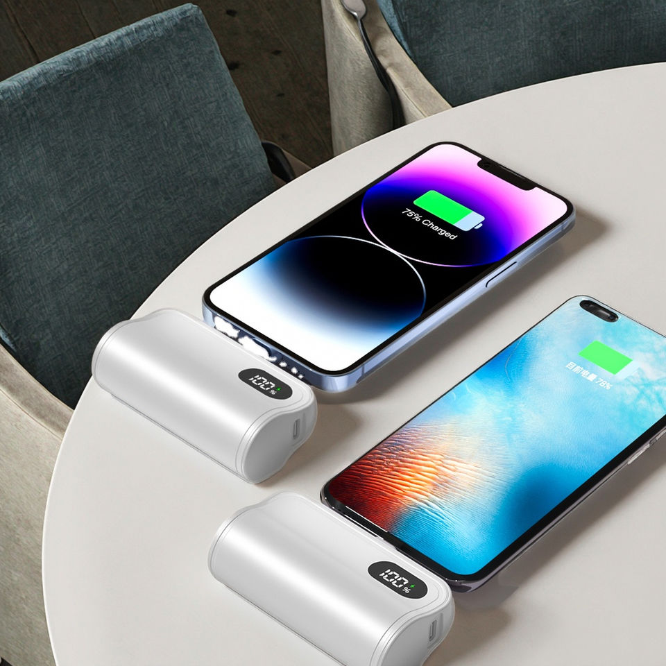 ธนาคารพลังงานขนาดเล็ก Type-C ขนาด5000มิลลิแอมป์ต่อชั่วโมงความจุขนาดใหญ่แบบพกพาชาร์จเร็วแบตเตอรี่ภายนอกสำหรับจอแสดงผลดิจิตอลของ iPhone