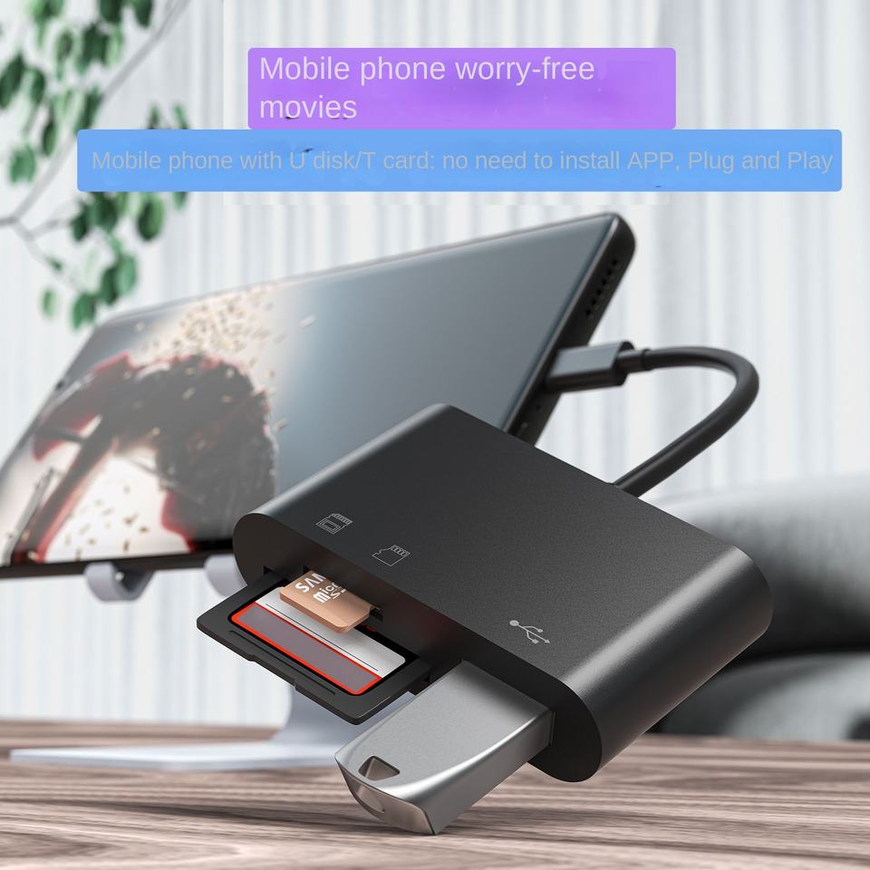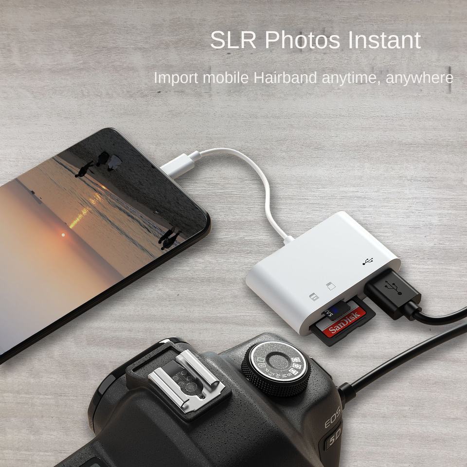 ตัวอ่านการ์ด Type-C เป็น SD/TF พร้อมสายแปลง OTG สำหรับโทรศัพท์มือถือและคอมพิวเตอร์ ช่องต่อ USB 2.0 ภายนอก วัสดุ ABS