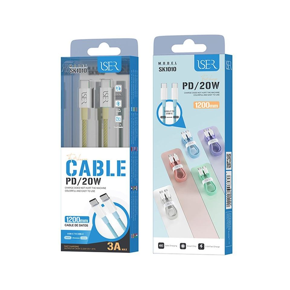 Type C to Type C Braided Cable 1.2m 20W Yellow