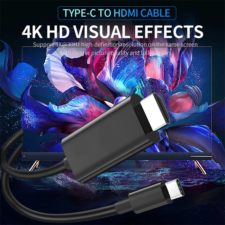 Type-C ไปยัง HDTV 4K30Hz ความละเอียดสูงสายเคเบิลร่วมหน้าจอสีดำ6.6ft 4K สำหรับจอมอนิเตอร์ Mac iPad Pro MacBook Air Chromebook TV
