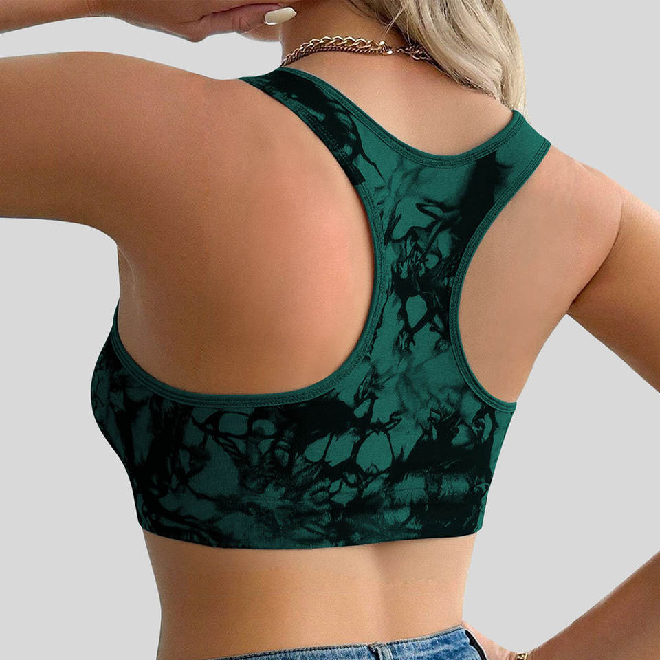 Strapless Breathable High Quality Medium Support Tie Dye Printed Seamless Shockproof Yoga Sports Bra Front Lightweight